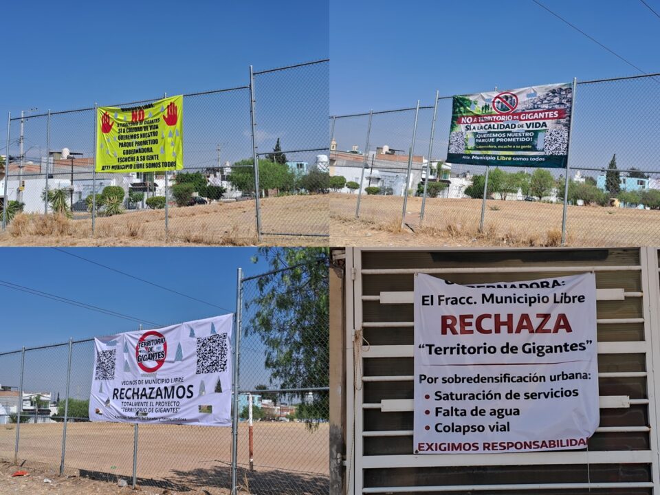 Aguascalientes, Ags.- Vecinos del fraccionamiento Municipio Libre, ubicado al oriente de la ciudad, manifestaron su rechazo al proyecto estatal denominado “Territorio de Gigantes”, que contempla la construcción de viviendas en un predio actualmente utilizado como cancha de fútbol.
